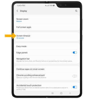 3. DECREASE SCREEN TIMEOUT: Scroll to and select Screen timeout, then select the desired option.