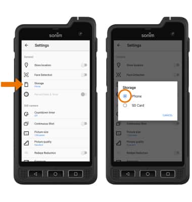 2. SET STORAGE LOCATION: From the Camera settings screen, select Storage then select the desired location.