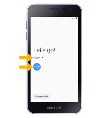 1. When turning the device on for the first time, or after a factory reset, you will be walked through a series of prompts to set up your device. Choose the desired language, then select the Arrow icon to continue.