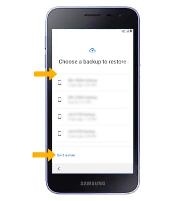 5. If you would like to restore data from your old device to your new device, select the desired device then follow the prompts. Select Don't restore if you would like to set up the device without restoring.