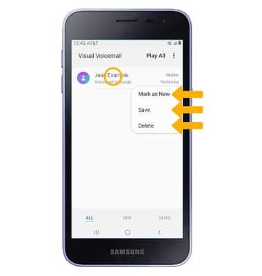 ADDITIONAL OPTIONS: Select and hold the desired voicemail, then select the desired option.
