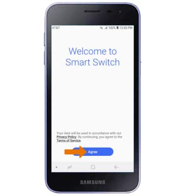 4. TRANSFER CONTENT USING THE SAMSUNG SMART SWITCH MOBILE APP: Review the Terms of Service, then select Agree.