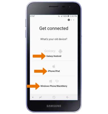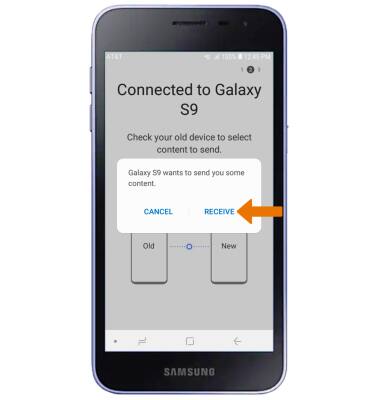 Note: If using Samsung Smart Switch for the first time, you have to grant Smart Switch permission to access Phone, Contacts, Calendar, Text messages, Storage, Microphone and Location. From the permissions screen, select Start.