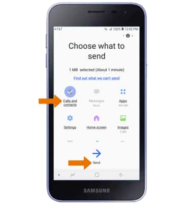 9. The devices are now connected. On the old device, select the desired content you would like to transfer then select Send.