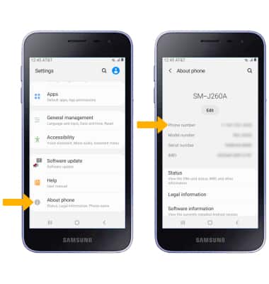 2. Scroll to and select About phone. The device's Phone number will be displayed.