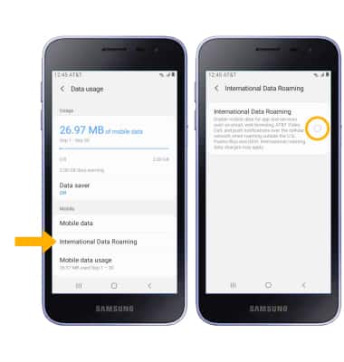 From the Data usage screen, select International Data Roaming then select the International Data Roaming circle.