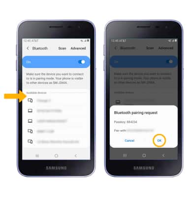 Note: You may be prompted to enter a passcode (common default passcode is 0000).