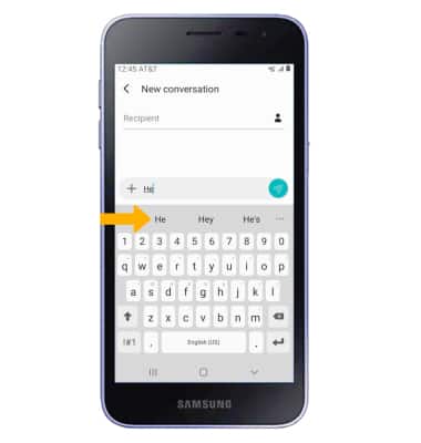 When typing a word, three suggestions will appear at the top of the keyboard. Select the desired suggestion to enter it into the text field.