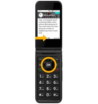 Note: Alternately, you can access the KaiOS store by pressing the OK button to access the Apps tray > navigational buttons to highlight the KaiOS Store > OK button to select.