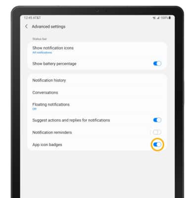 Note: To enable or disable app icon badges, select the App icon badges switch.