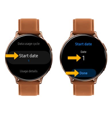 From the Data usage screen, scroll to and select Start date. Scroll to and select the desired date, then select Done.