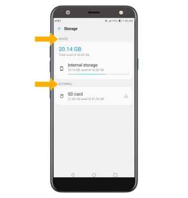 Note: From the Internal storage screen, select Internal Storage then select Free up space to view unnecessary items that can be deleted to free up space.