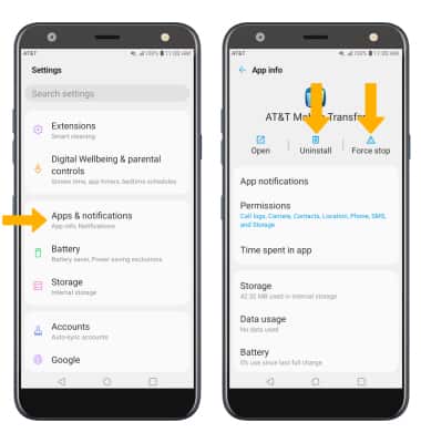 From the Settings screen, scroll to and select Apps & notifications > App info > desired app. From here, you may Uninstall or Force stop the app.