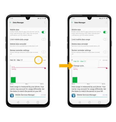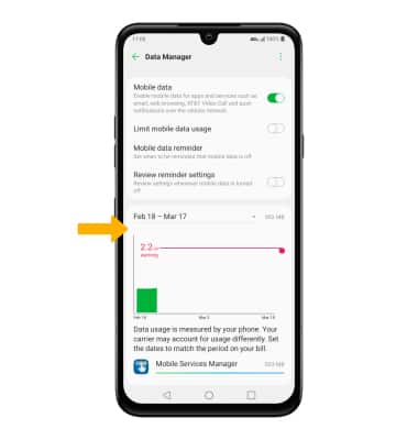 • SET MONTHLY DATA LIMIT: When the Limit mobile data usage switch is enabled, select and drag the Limit marker up or down.