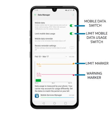 • ENABLE/DISABLE DATA LIMIT: Select the Limit mobile data usage switch.