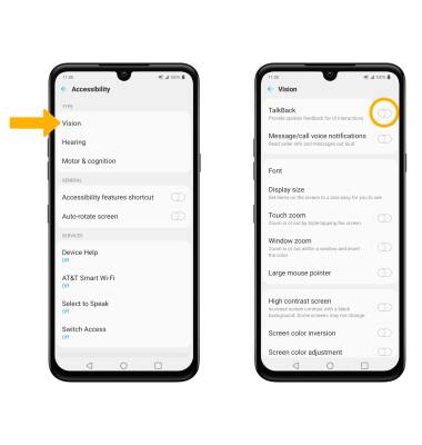 Note: When Accessibility shortcut is on, press the Power/Lock and Volume Up buttons simultaneously to start the selected service. To change the shortcut service, select the desired switch.