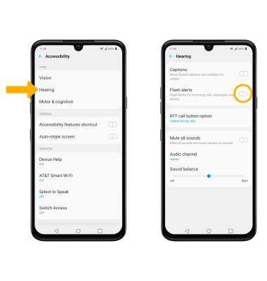 From the Accessibility screen, select Hearing then select the Flash alerts switch.