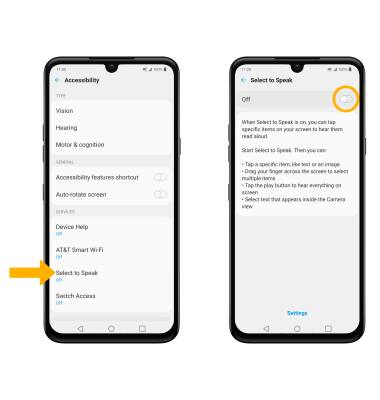 From the Accessibility screen, select Select to Speak then select the Select to Speak switch to place it in the on position.