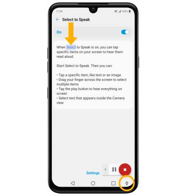 To use Select to Speak, select the Accessibility icon then select the area of the screen you would like to hear read aloud.