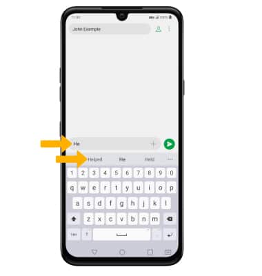 When typing a word, up to three suggestions will appear at the top of the keyboard. Select the desired suggestion to enter it into the text field.