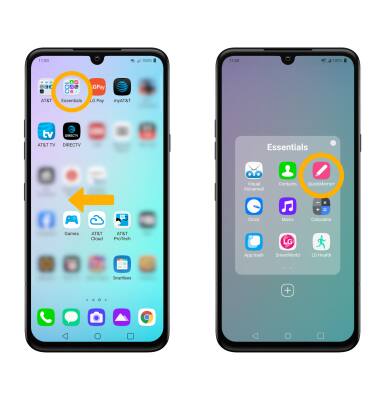 1. From the home screen, swipe left then select the Essentials folder. Select the QuickMemo+ app.