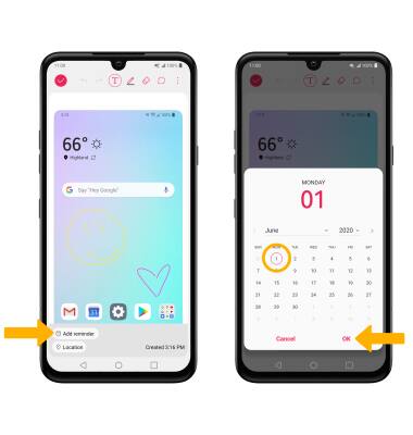 4. Select Add reminder > Time > desired date > OK > desired time > OK.