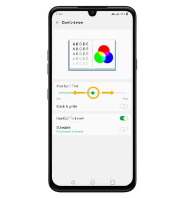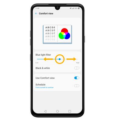 4. To manually adjust the level of blue light, select and drag the Blue light filter slider to the left or the right.