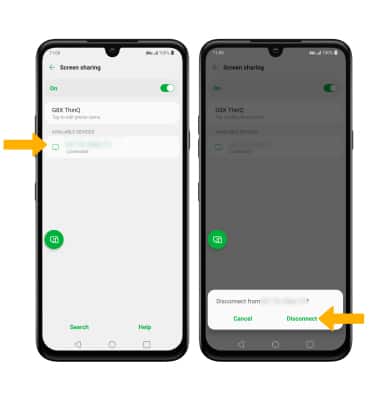 From the Screen sharing screen, select the desired connected device then select Disconnect.