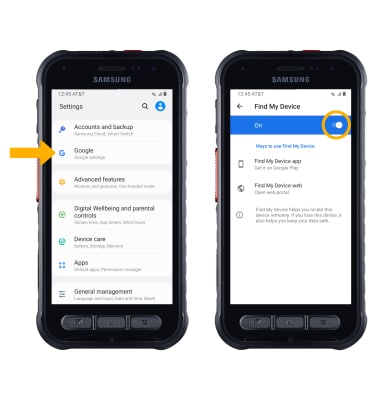 2. Scroll to and select Google > select Find My Device > ensure the Find My Device switch is in the On position.