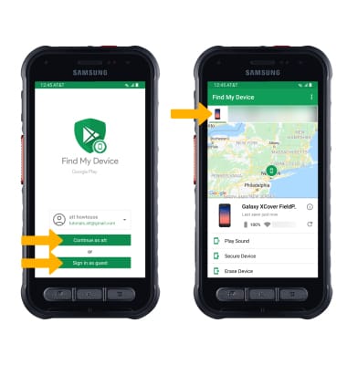 2. Select Continue as to sign into the Google account registered on the device, or select Sign in as guest to sign into a new account then follow the prompts. Select the device you wish to locate. Find My Device will show the location of that device.