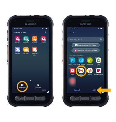 Select the Add apps icon. Select the desired app(s), then select Add to add apps to the secure folder.