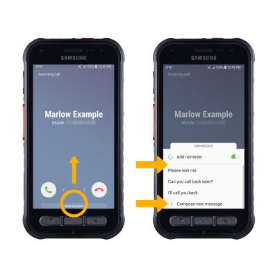 When receiving a call, swipe up from the bottom of the screen to decline a phone call and send a text message. Select the desired text message to send, or select Write a new message to write your own.