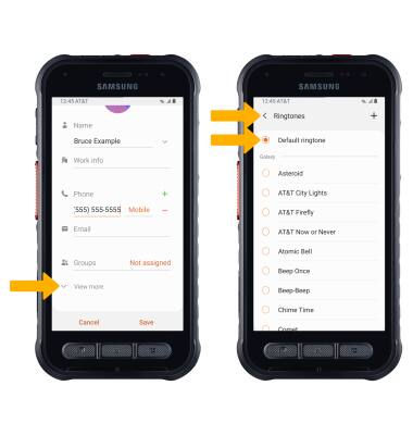 From the edit contact screen, select View more then scroll to and select Ringtone. Select the desired Ringtone, then select the Back arrow.
