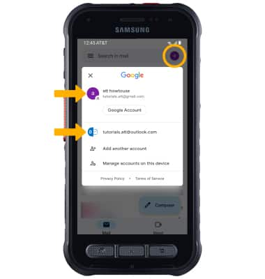Gmail app. If you have multiple email accounts on the device, select account icon, then select the desired account.