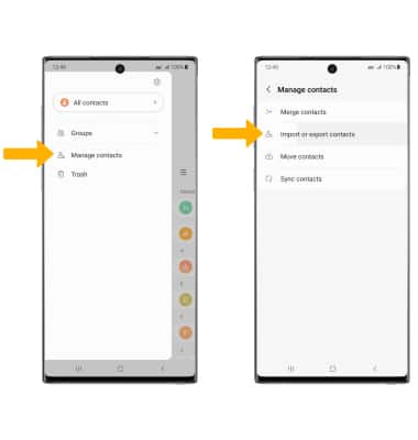 Menu icon > Manage contacts > Import or export contacts > follow the prompts.