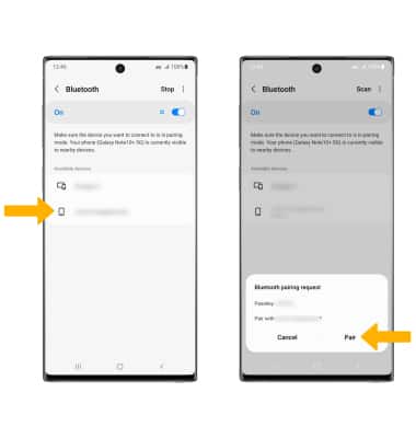 2. When Bluetooth is enabled, your device will automatically scan for devices. Select the desired device. Select Pair when prompted to request a pairing.