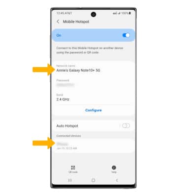 View mobile hotspot network name & connected devices