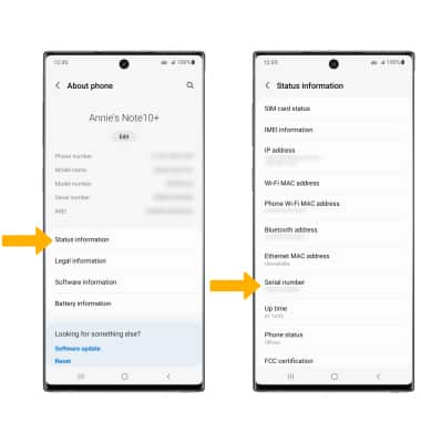 From the About phone screen, select Status information. The device's Serial number will be displayed.