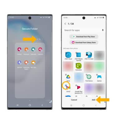 Select the Add icon. Select the desired app(s), then select Add to add apps to the secure folder.