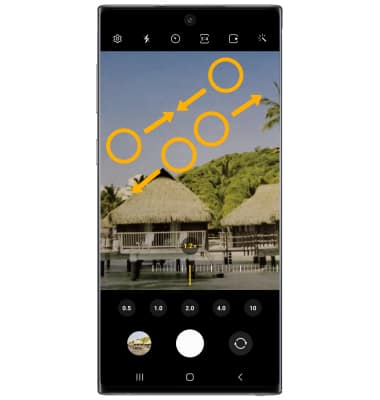 Single Take allows you to shoot a scene in a series of pictures and short videos at the same time. From the camera screen, swipe right to SINGLE TAKE then select the Capture icon to begin recording. Pan the camera around slowly to capture multiple photos in the scene. Single Take will stop automatically after about 10 seconds. To manually stop recording, select the Stop icon. Your device will automatically process all the photos and videos captured.