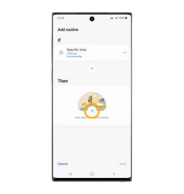 3. Select the Add icon under Then to select what the routine will do.