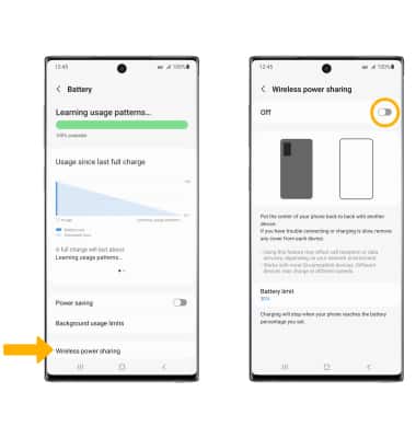 3. Select Wireless power sharing, then select the Wireless power sharing switch to enable.
