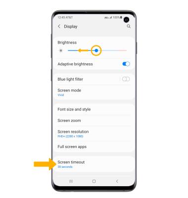 • DECREASE SCREEN TIMEOUT: Scroll to and select Screen timeout, then select the desired option.