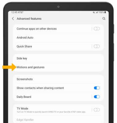 4. To enable or disable motions and gestures, select the switch next to the desired feature.
