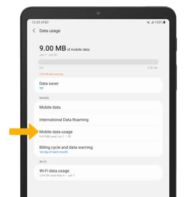 4. Select Mobile data usage. Mobile data usage will be displayed.