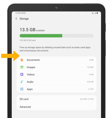 1. To delete unwanted Documents, Images, Videos, Audio, and Apps, select the desired field.