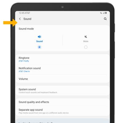 Note: To adjust other volume settings, press the Volume buttons on the right of the device then select the Menu icon. Adjust the Volume settings as desired.