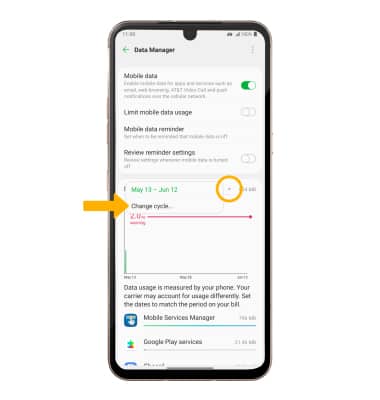From the Data Manager screen, select the Data usage drop down icon then select Change cycle....
