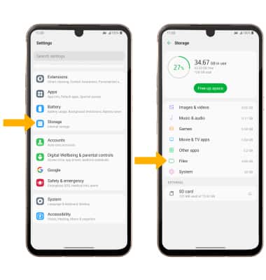 2. Scroll to and select Storage, then select Files.