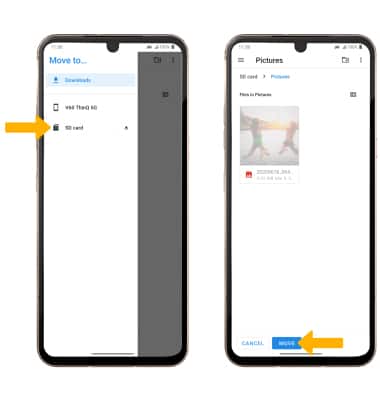 Menu icon, then select SD card. Navigate to the desired location, then select MOVE.